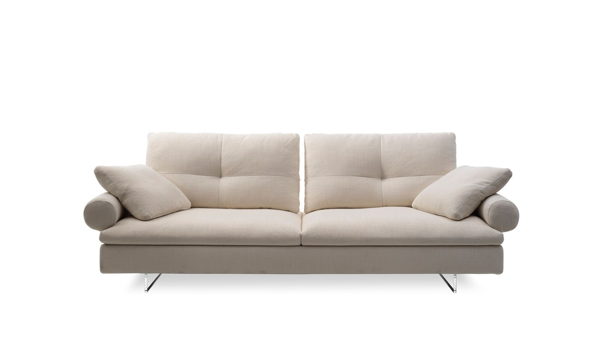 - Assise double et monobloc, disponible en canapé fixe, d’angle, et convertible.